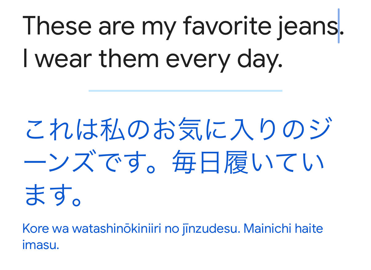 (Translation: These are my favorite pair of jeans. I wear them every day)